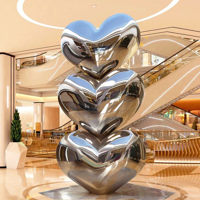 Tượng thép không gỉ hình trái tim xếp chồng hoàn thiện gương là một tác phẩm nghệ thuật tuyệt đẹp được thiết kế để nâng tầm trang trí khách sạn. Được chế tác từ thép không gỉ với lớp hoàn thiện gương, tác phẩm điêu khắc này có hình trái tim xếp chồng tượng trưng cho tình yêu và sự thanh lịch. Tác phẩm điêu khắc này hoàn hảo để thêm một chút tinh tế và quyến rũ cho không gian khách sạn. Lớp hoàn thiện gương tạo ra một bề mặt phản chiếu, làm tăng thêm không khí của sảnh khách sạn, phòng chờ và các khu vực chung khác, biến nó thành một điểm nhấn cho khách và du khách.