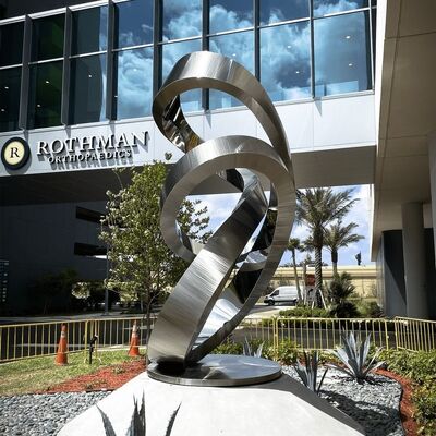 This captivating stainless steel ribbon sculpture redefines modern minimalist art. Crafted from high-grade stainless steel with a sophisticated mirror or matte finish, its fluid, dynamic form creates a sense of graceful movement, as if a ribbon is frozen in a gentle breeze.